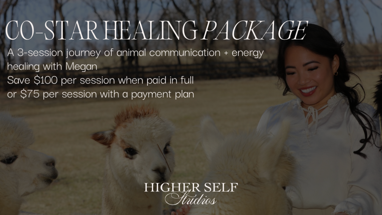 Co-Star Animal Communication and Healing 3-Session Package with Megan ($100 off per session PIF, or $75 off per session with PP)